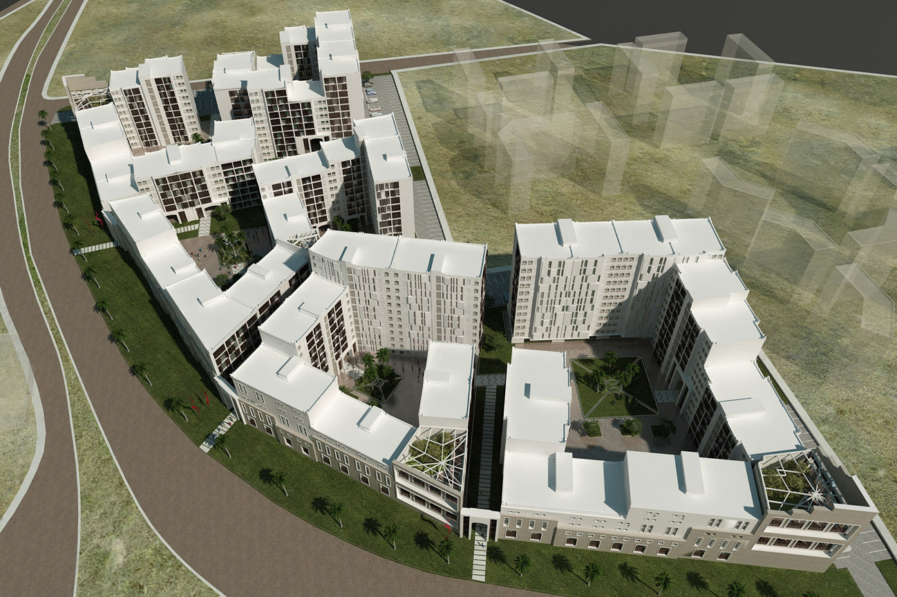 Tripoli Housing is located in one of the most important corners of the city Tripoli, Libya. The project was built on 40,175 square meter of land, situated in different sizes with 458 residential units above the street level that is located in social areas of site usage.The building silhouettes, composed of blocks with different heights, shaded streets, inter-block transition, courtyards, water and local vegetation, constitute the main elements of the design.